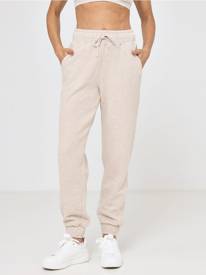 מכנסי וופל ארוכים דקים עם כיסים