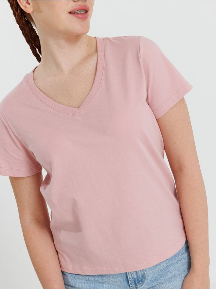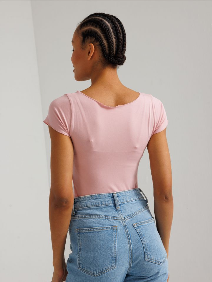 חולצה קצרה דקה וצמודה צווארון וי לנערות