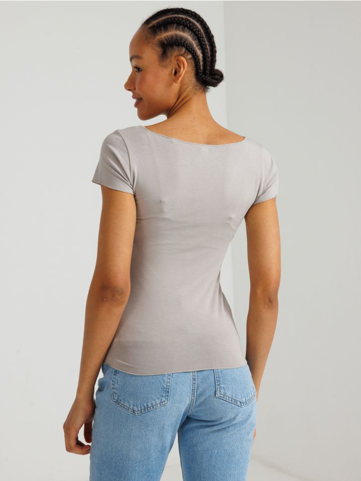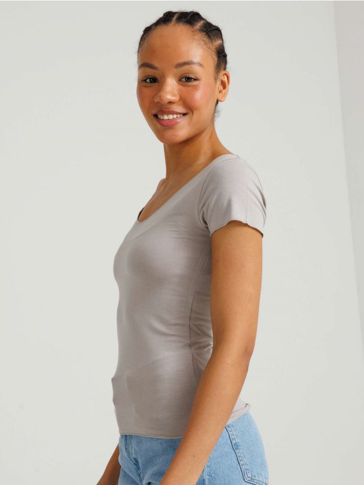 חולצה קצרה דקה וצמודה צווארון וי לנערות