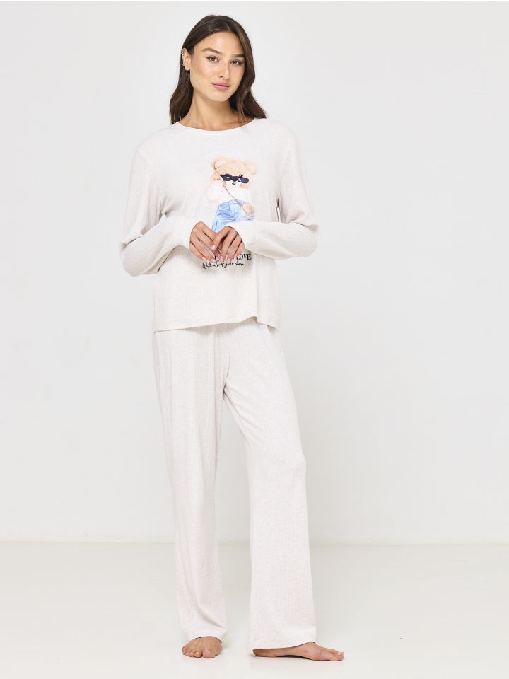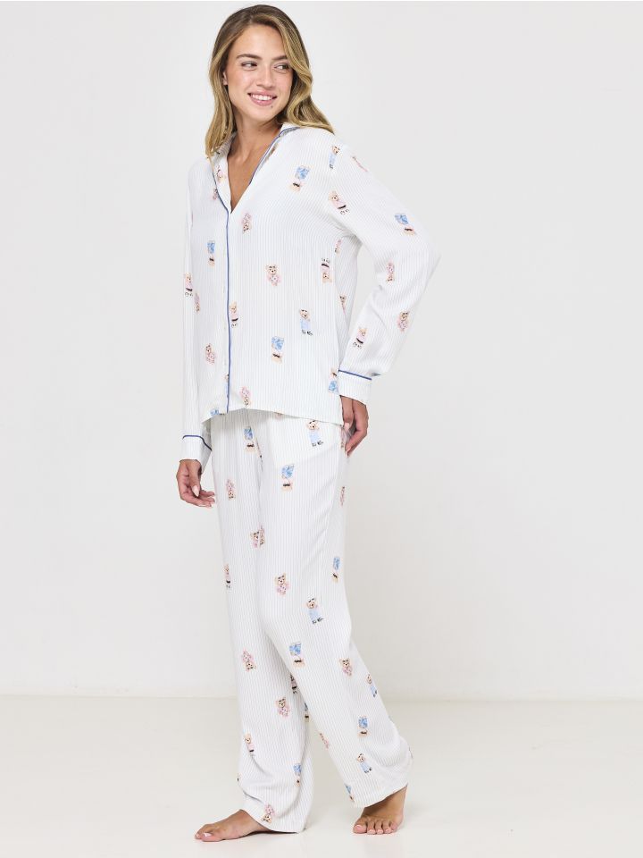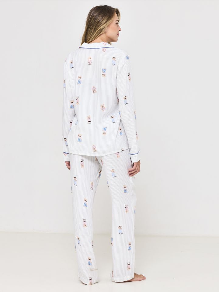 סט פיג’מה מכופתרת אריג דק TEDDY
